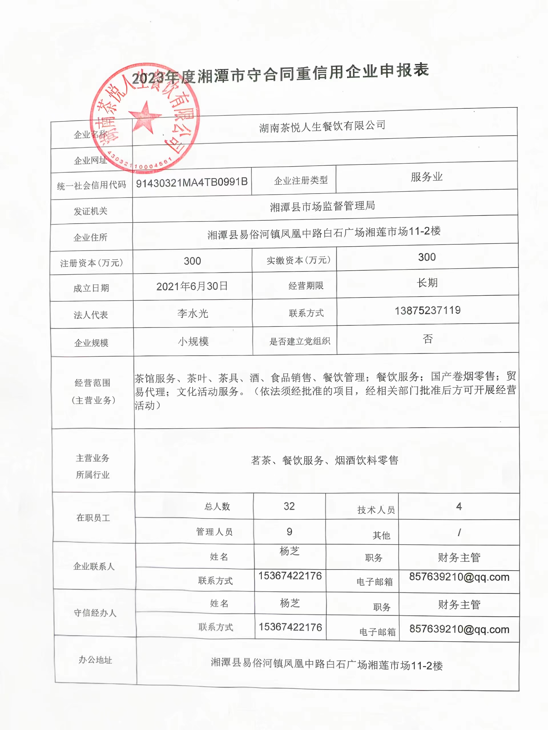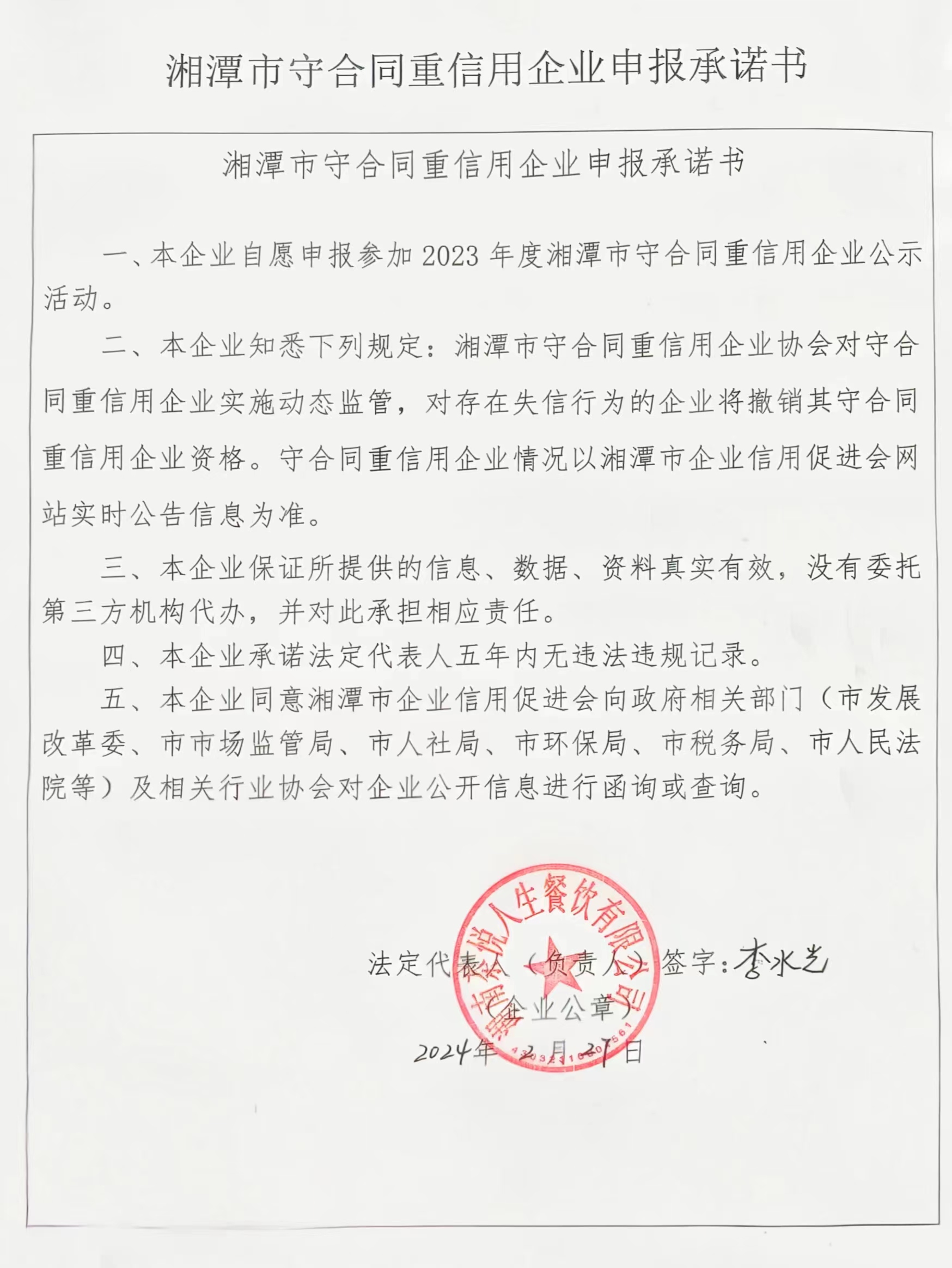 本企業(yè)根據(jù)《湘潭市守合同重信用企業(yè)申報規(guī)定》等編制 2023 年度企業(yè)信用報告書,并保證本報告書內(nèi)容真實(shí)、準(zhǔn)確、完整。