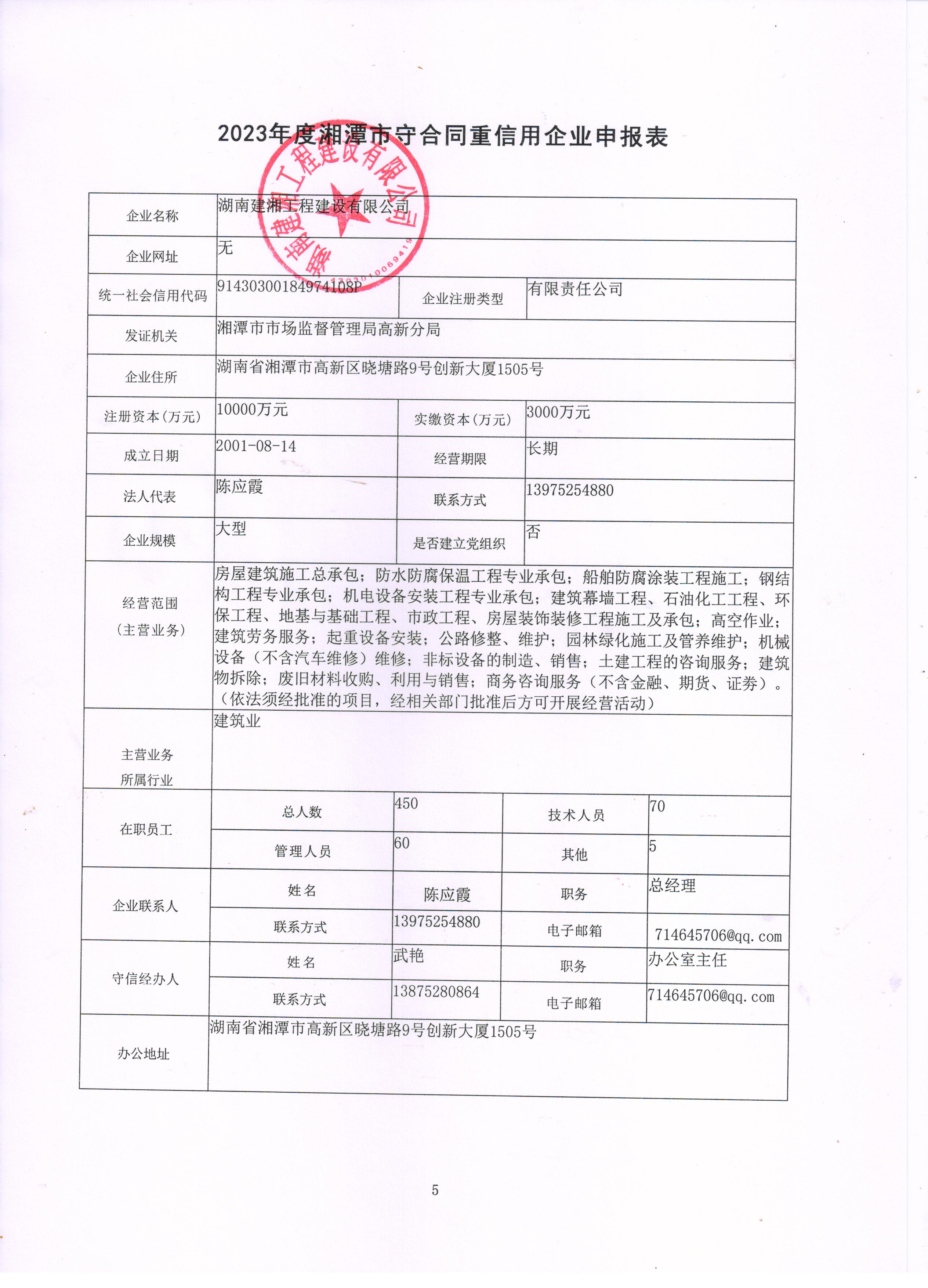 本企業(yè)根據(jù)《湘潭市守合同重信用企業(yè)申報規(guī)定》等編制 2023 年度企業(yè)信用報告書,并保證本報告書內(nèi)容真實、準確、完整。