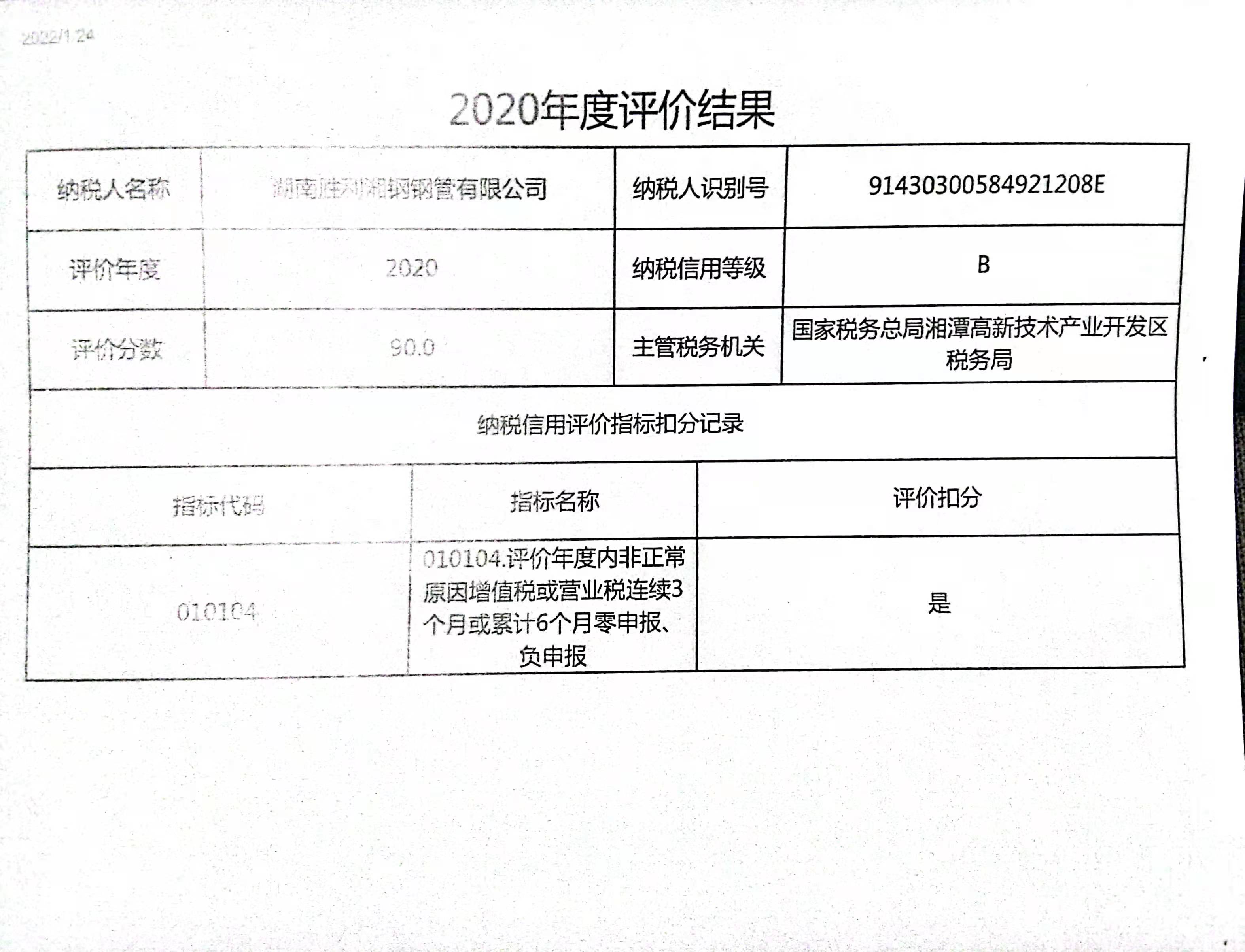 企業(yè)納稅信用等級(jí)報(bào)告:
