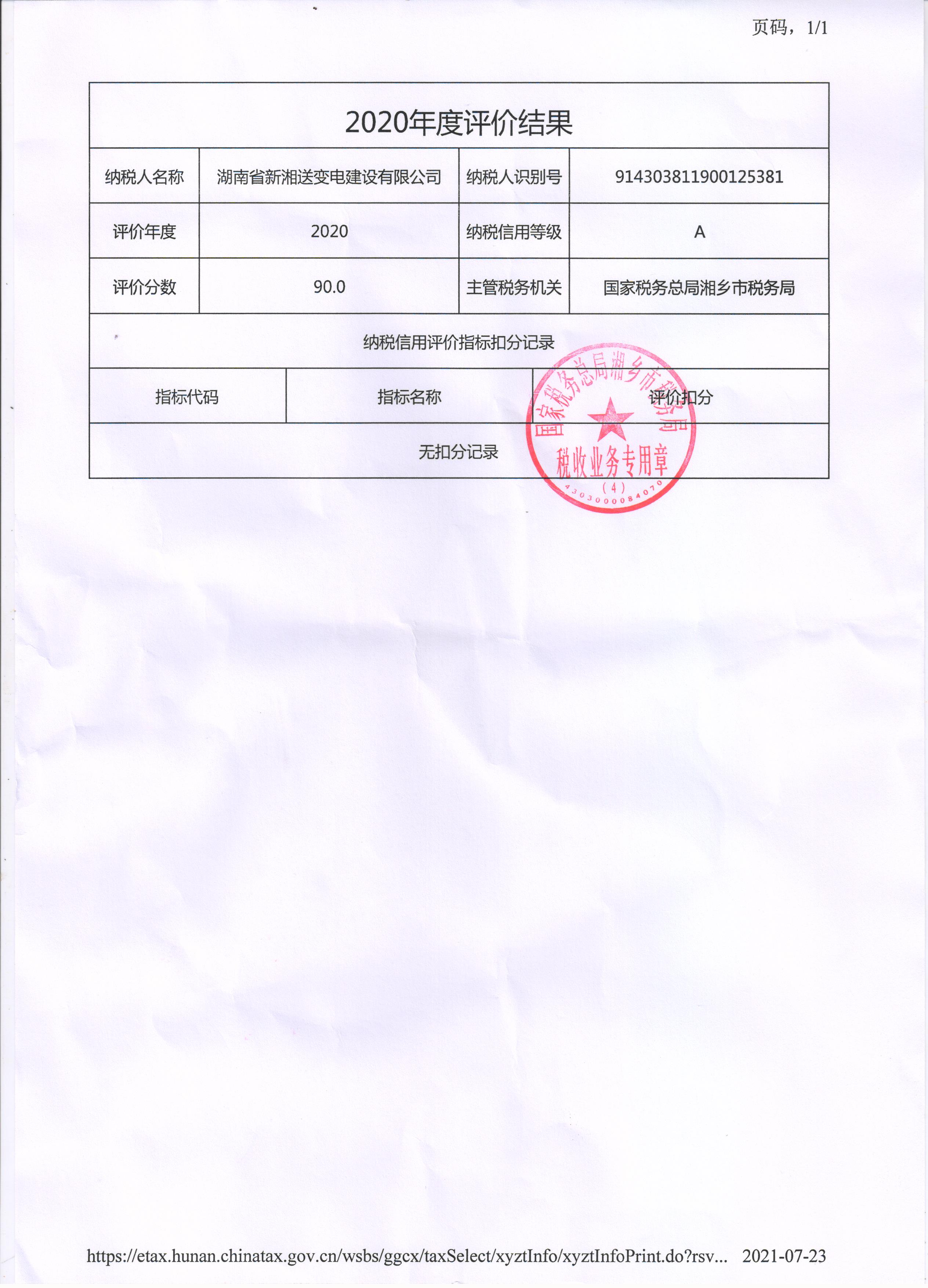 企業(yè)納稅信用等級(jí)報(bào)告: