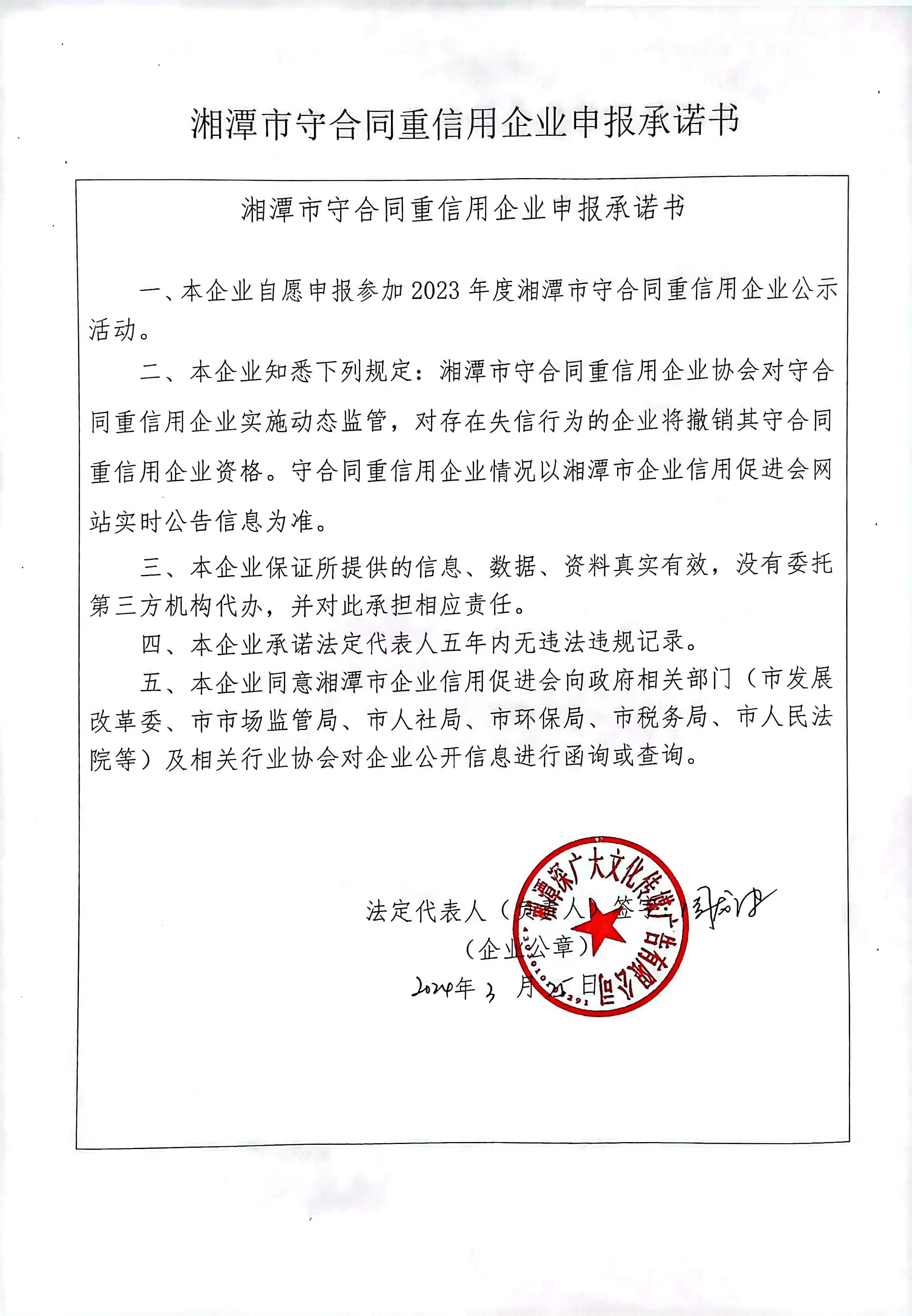 本企業(yè)根據(jù)《湘潭市守合同重信用企業(yè)申報規(guī)定》等編制 2023 年度企業(yè)信用報告書,并保證本報告書內(nèi)容真實、準確、完整。